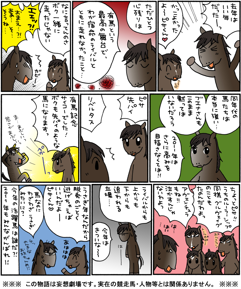 2011.01.01 その他 厩舎にて 2011 ピースケ #アヴェンチュラ#ヴィクトワールピサ#グルヴェイグ#トールポピー#ポルトフィーノ#リベルタス#ルーラーシップ コメントをキャンセルメールアドレスが公開されることはありません。 ※ が付いている欄は必須項目です 上に表示された文字を入力してください。 ABOUT ME 松本ぷりっつ漫画家・イラストレーターXInstagramYouTubeLINEContactよかったらフォローしてください。