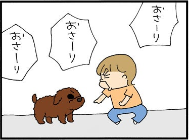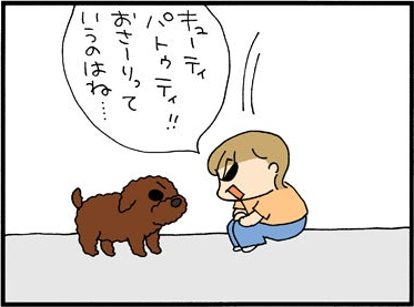 2011.09.01 2011 ミスターキューティパトゥティVS.チー ピースケ 「おさーり」とは、「おすわり」の未熟形である。 チーは、犬ならみんな「おすわり」ができると 思っているらしく、しつこく犬におすわりを要求していた。 できれば、先にウンコを教えてやってくれよ。(´゚ω゚) 当然、犬はガン無視だ。 そこでチーが犬に語りかけようとしたら・・・・ 教訓:目線の高さを合わせると、 キューティパトゥティはとびついてくるゼ! 仕事場の犬と、チーの戦いはつづく・・・。 Amazonリンク:主婦の友社 書籍一覧※Amazonアソシエイトプログラムで適格販売により収入を得ています※ Amazonリンク:竹書房 書籍一覧※Amazonアソシエイトプログラムで適格販売により収入を得ています※ わくわくアニメ LINEスタンプ うちの3姉妹 LINEスタンプ #いぬ#チー コメントをキャンセルメールアドレスが公開されることはありません。 ※ が付いている欄は必須項目です 上に表示された文字を入力してください。 ABOUT ME 松本ぷりっつ漫画家・イラストレーターXInstagramYouTubeLINEContactよかったらフォローしてください。