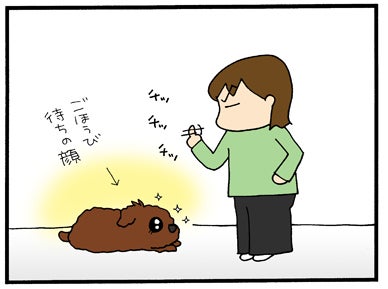 「ふせ」と言葉を教えてごほうびをあげる・・・。