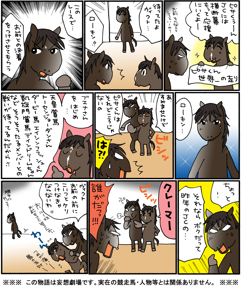 2011.11.27 中長距離 ジャパンカップ 2011 ピースケ #ヴィクトワールピサ#ルーラーシップ#ローズキングダム コメントをキャンセルメールアドレスが公開されることはありません。 ※ が付いている欄は必須項目です 上に表示された文字を入力してください。 ABOUT ME 松本ぷりっつ漫画家・イラストレーターXInstagramYouTubeLINEContactよかったらフォローしてください。