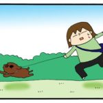 ワンちゃんをみつけると猛ダッシュをするのでリードをきつめに引くんだけど・・・