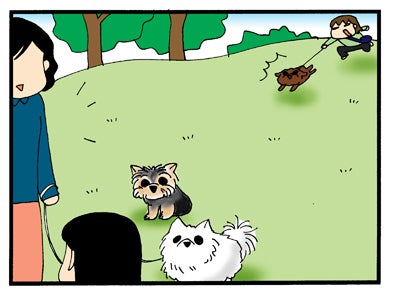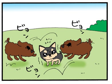 小さいワンちゃんなんて、いっつもおびえちゃってかわいそう。(´゚ω゚)