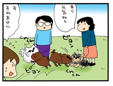 そして、ワンちゃんたちの中に無理やり入っていき・・・