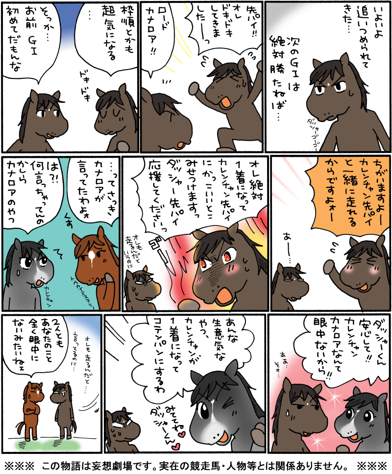 2012.03.25 短距離 高松宮記念 2012 ピースケ #カレンチャン#ダッシャーゴーゴー#トウカイミステリー#ロードカナロア コメントをキャンセルメールアドレスが公開されることはありません。 ※ が付いている欄は必須項目です 上に表示された文字を入力してください。 ABOUT ME 松本ぷりっつ漫画家・イラストレーターXInstagramYouTubeLINEContactよかったらフォローしてください。