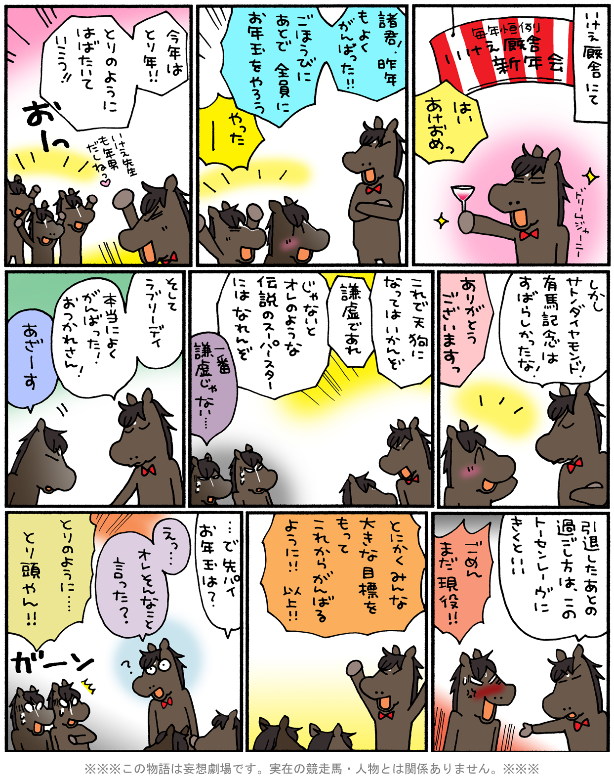 2017.01.01 その他 厩舎にて 2017 ピースケ #サトノダイヤモンド#トーセンレーヴ#ドリームジャーニー#ラブリーデイ コメントをキャンセルメールアドレスが公開されることはありません。 ※ が付いている欄は必須項目です 上に表示された文字を入力してください。 ABOUT ME 松本ぷりっつ漫画家・イラストレーターXInstagramYouTubeLINEContactよかったらフォローしてください。