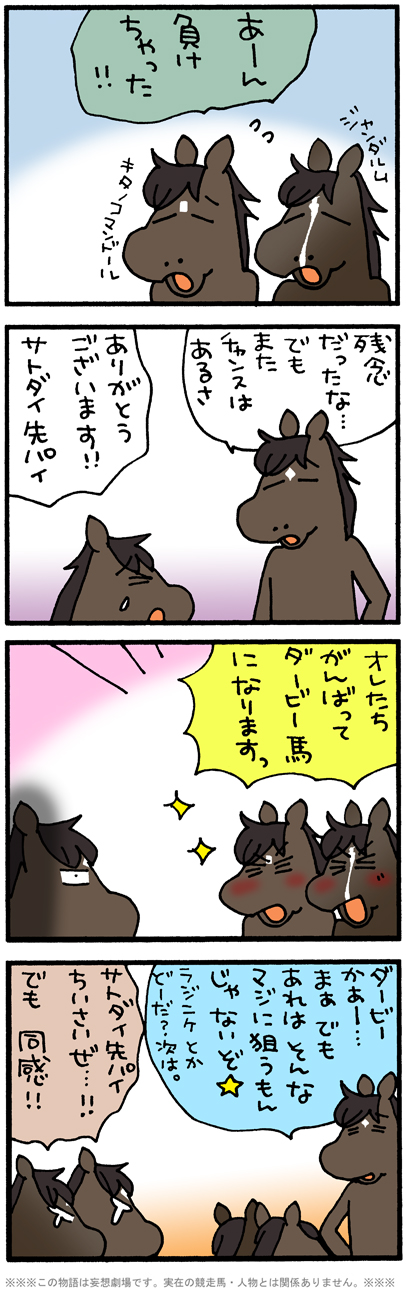 2018.04.15 3歳 皐月賞 2018 ピースケ #アルアイン#キタノコマンドール#サトノダイヤモンド#ジャンダルム#ペルシアンナイト コメントをキャンセルメールアドレスが公開されることはありません。 ※ が付いている欄は必須項目です 上に表示された文字を入力してください。 ABOUT ME 松本ぷりっつ漫画家・イラストレーターXInstagramYouTubeLINEContactよかったらフォローしてください。