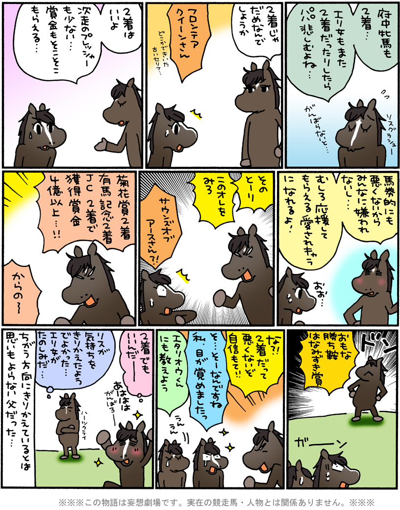 2018.11.11 中長距離 エリザベス女王杯 2018 ピースケ #サウンズオブアース#ハーツクライ#フロンテアクイーン#リスグラシュー コメントをキャンセルメールアドレスが公開されることはありません。 ※ が付いている欄は必須項目です 上に表示された文字を入力してください。 ABOUT ME 松本ぷりっつ漫画家・イラストレーターXInstagramYouTubeLINEContactよかったらフォローしてください。