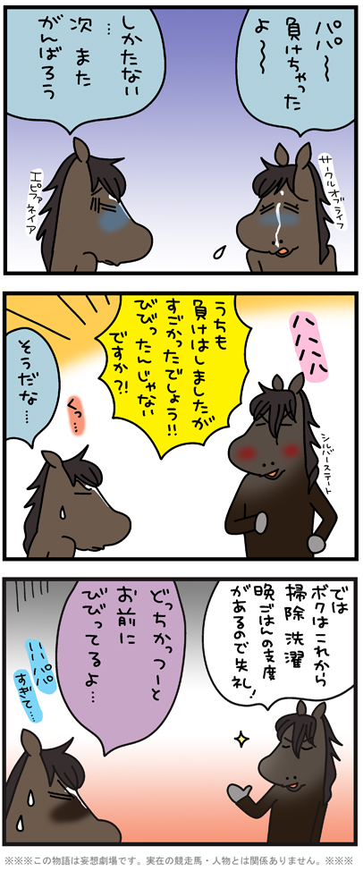 2022.04.10 3歳 桜花賞 2022 ピースケ #ウォーターナビレラ#エピファネイア#サークルオブライフ#シルバーステート#フォラブリューテ コメントをキャンセルメールアドレスが公開されることはありません。 ※ が付いている欄は必須項目です 上に表示された文字を入力してください。 ABOUT ME 松本ぷりっつ漫画家・イラストレーターXInstagramYouTubeLINEContactよかったらフォローしてください。