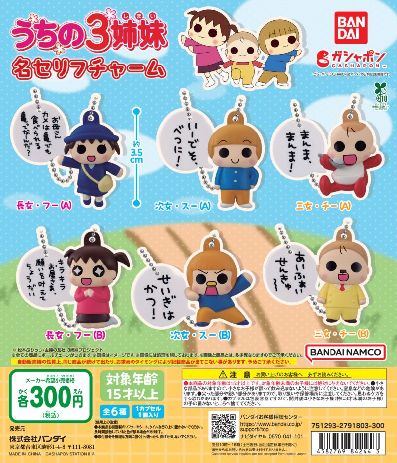 松本ぷりっつ先生原作のTVアニメ『うちの3姉妹』がチャームになってガシャポンに登場⭐