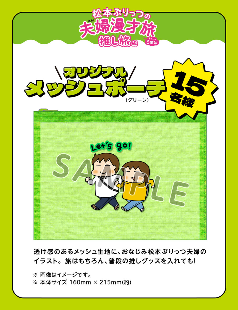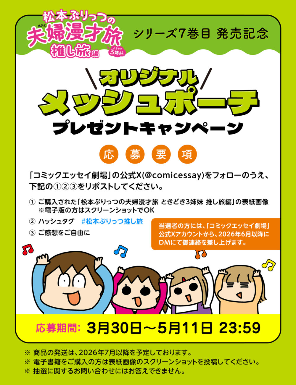 最新作【推し旅編】の発売を記念して、オリジナルメッシュポーチを抽選でプレゼントいたします✨@comicessay